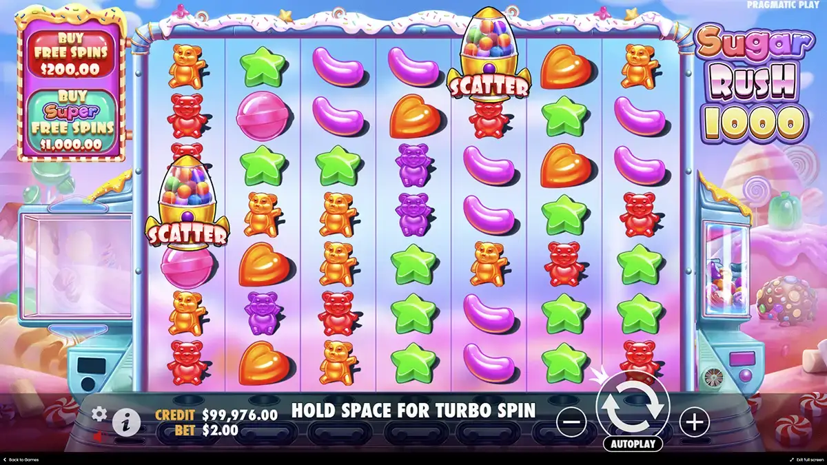 Ενώ το αρχικό Sugar Rush ήταν ήδη δημοφιλές, η ανανεωμένη έκδοση – ο Sugar rush 1000 κουλοχέρη – ενσωματώνει εξελιγμένα χαρακτηριστικά που τον ξεχωρίζουν. Το πλέγμα 7x7 παραμένει, όμως ο ρυθμός παιχνιδιού είναι πιο έντονος, με τα multiplier spots να εμφανίζονται συχνότερα. Το Sugar rush 1000 rtp είναι ελαφρώς υψηλότερο, προσφέροντας αυξημένη πιθανότητα απόδοσης στον παίκτη. Παράλληλα, η δυνατότητα για μέγιστο κέρδος Sugar rush 1000 είναι εμφανώς διευρυμένη σε σχέση με τον αρχικό τίτλο. Οι δωρεάν περιστροφές έχουν μεγαλύτερη δυναμική, ενώ η μεταβλητότητα είναι εστιασμένη σε πιο “εκρηκτικές” νίκες.